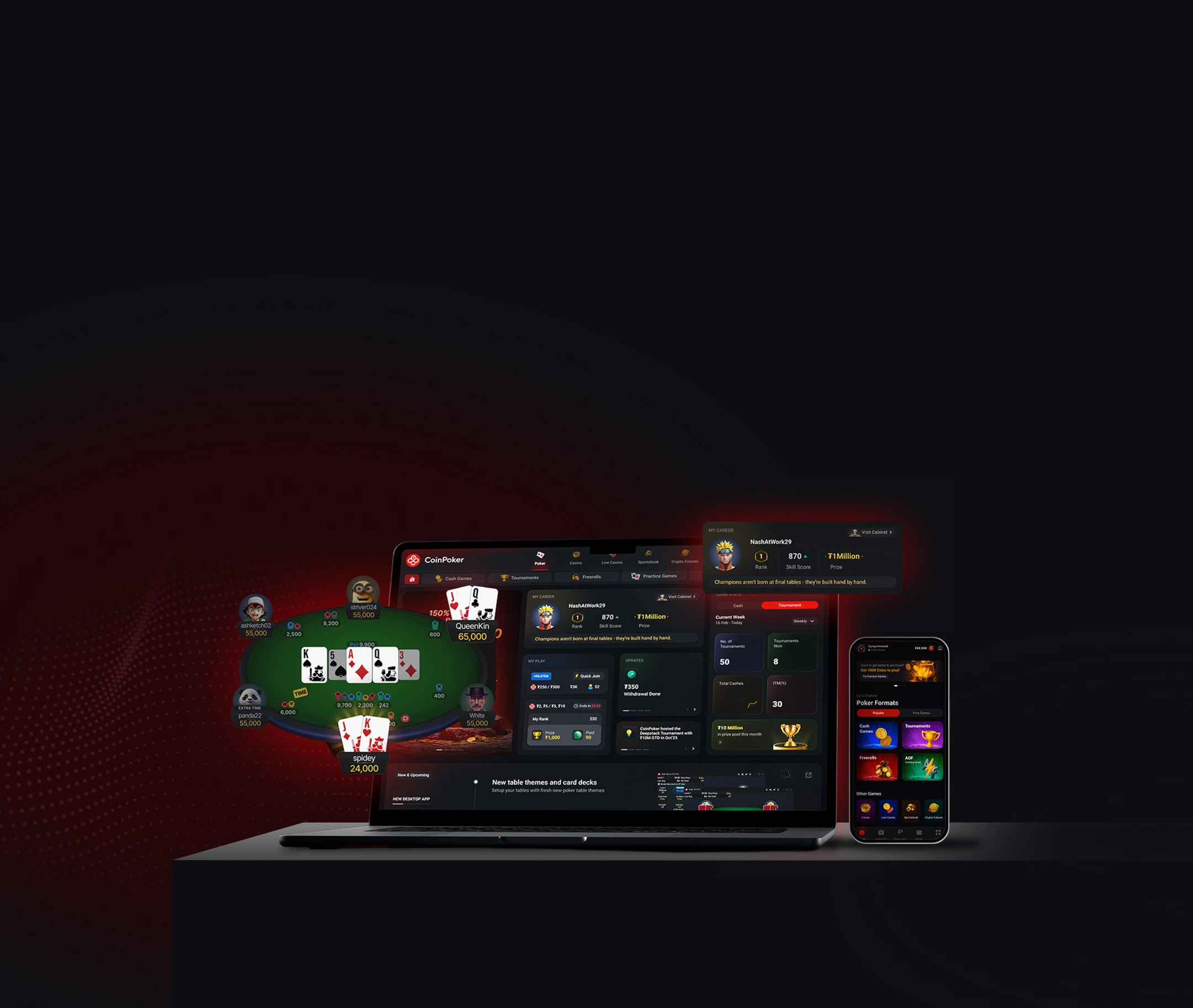 来自全球的玩家在 CoinPoker 进行真钱在线扑克游戏,享受丰厚奖金、安全的资金服务,以及可匿名参与的 24/7 扑克对局。