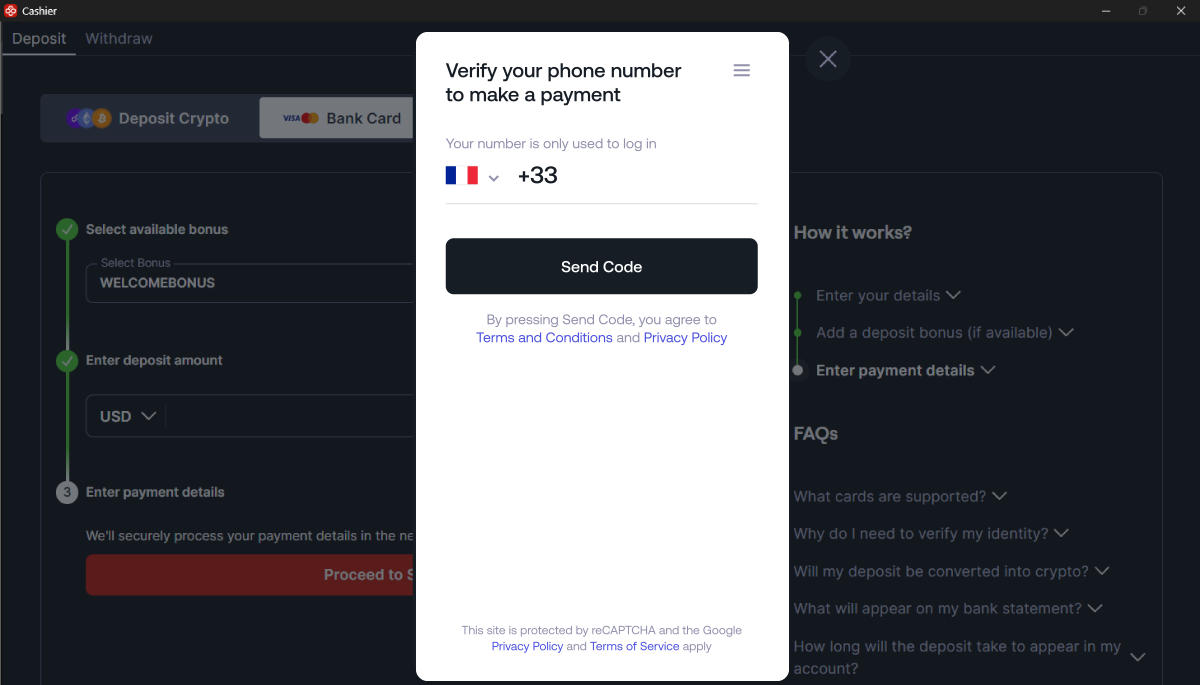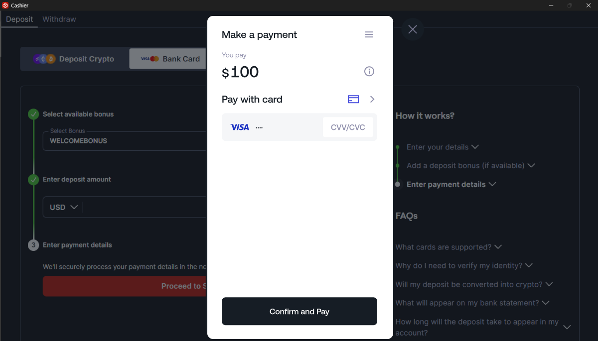 请按照以下说明使用您的银行卡向 CoinPoker 充值。