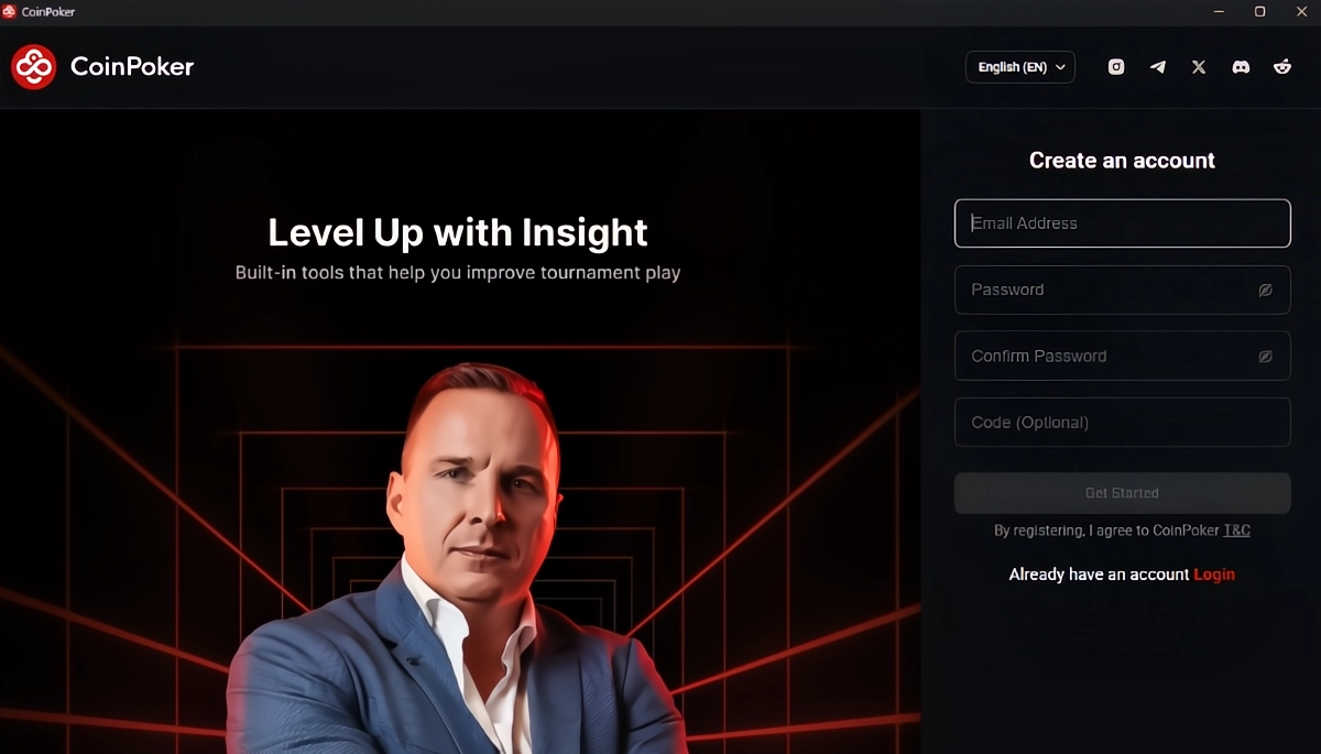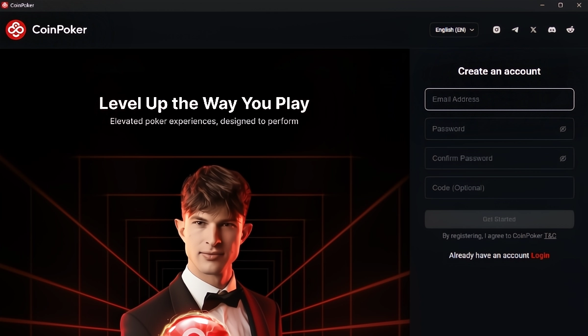输入您的 CoinPoker 邮箱地址和密码,如果您还没有账户,请注册。