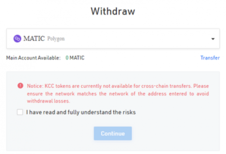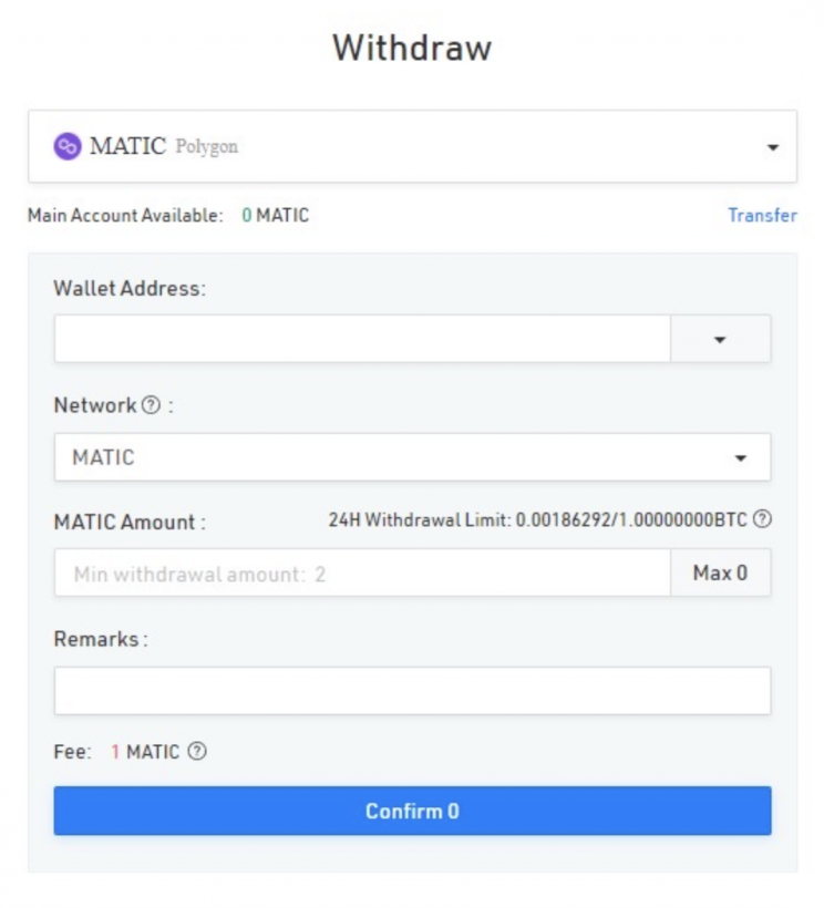 - 首先,请确保在KuCoin上购买MATIC代币,然后再进行提现操作。