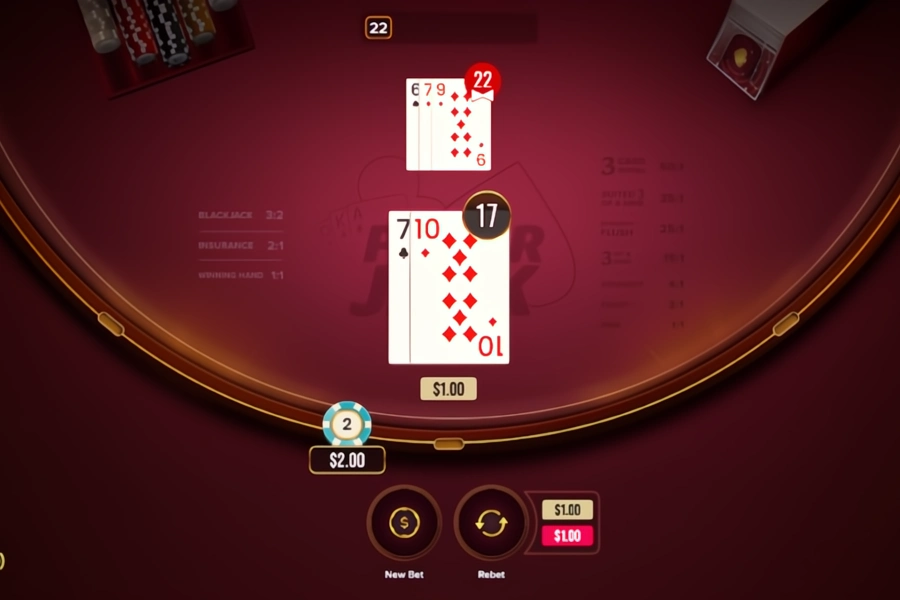 The game begins with the deal, after which the optional poker hand is evaluated using the player’s first two cards and the dealer’s face-up card. Once the side bet is resolved, the game proceeds as a standard Blackjack round, with familiar actions and payouts.