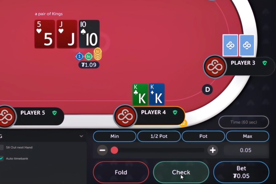 Image: Player 4 calls, and their pair of Kings loses to the set of Fives from Player 2.