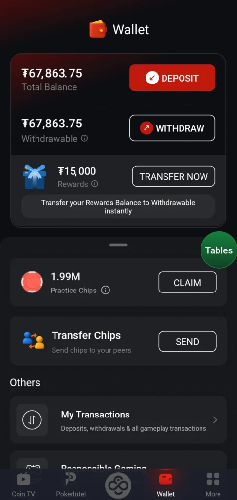 Click on Transfer Now, and the money will instantly be added to your CoinPoker balance.