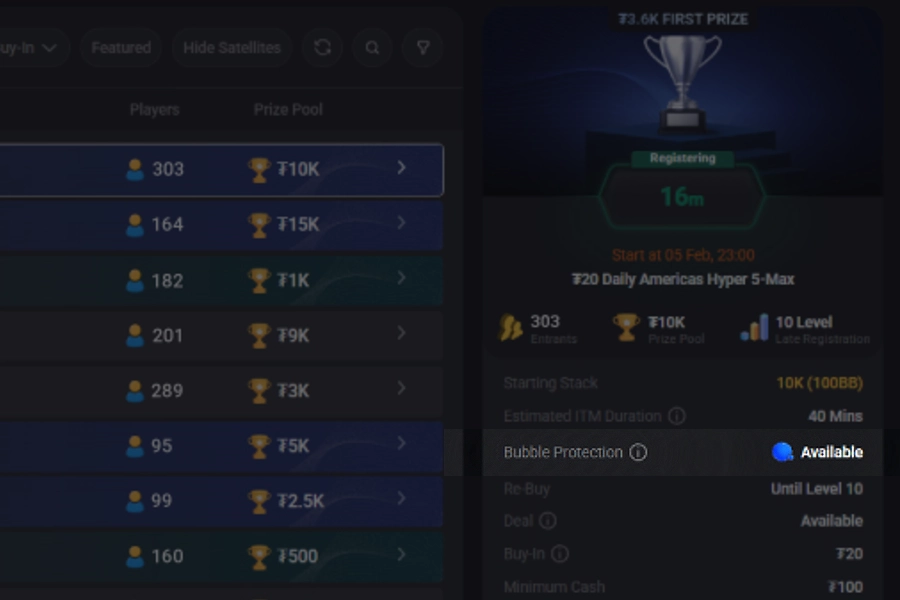 If you’ve ever busted one place short of the money, Bubble Protection can help. With this new poker feature, get an automatic refund of your buy-in when you bust during the bubble, as long as you’ve registered early.