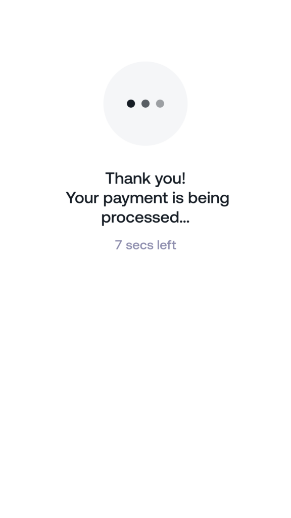 After the countdown finishes on the previous screen, you’ll see a confirmation that the order was completed.