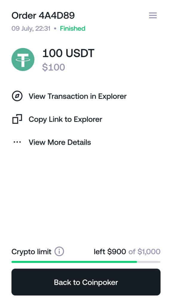 With your bank card deposit complete, those funds are available for use on any of the games on CoinPoker.