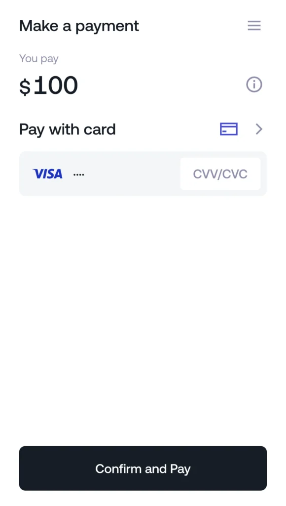 Check that the amount is correct, and then enter the three-digit code from the back of your bank card (CVV/CVC).