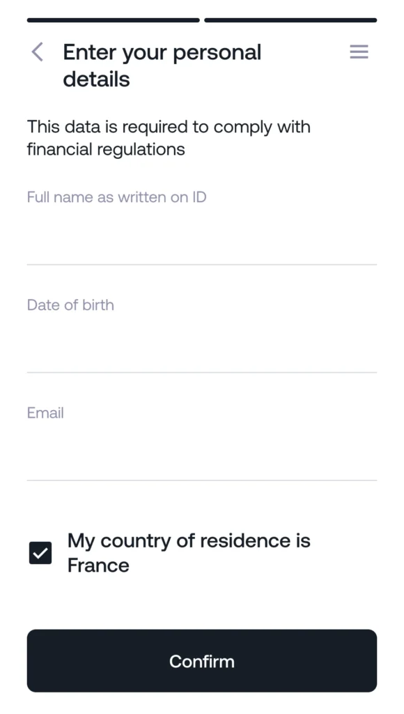 Certain countries require address and ID documents up front, while other countries only require an email, full name, and date of birth.