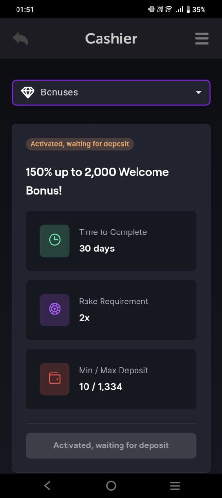 Step 5: Choose Your Amount and Activate Bonus