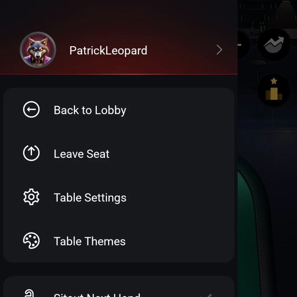 • On Mobile, click on the icon in the top-left corner of the game table.