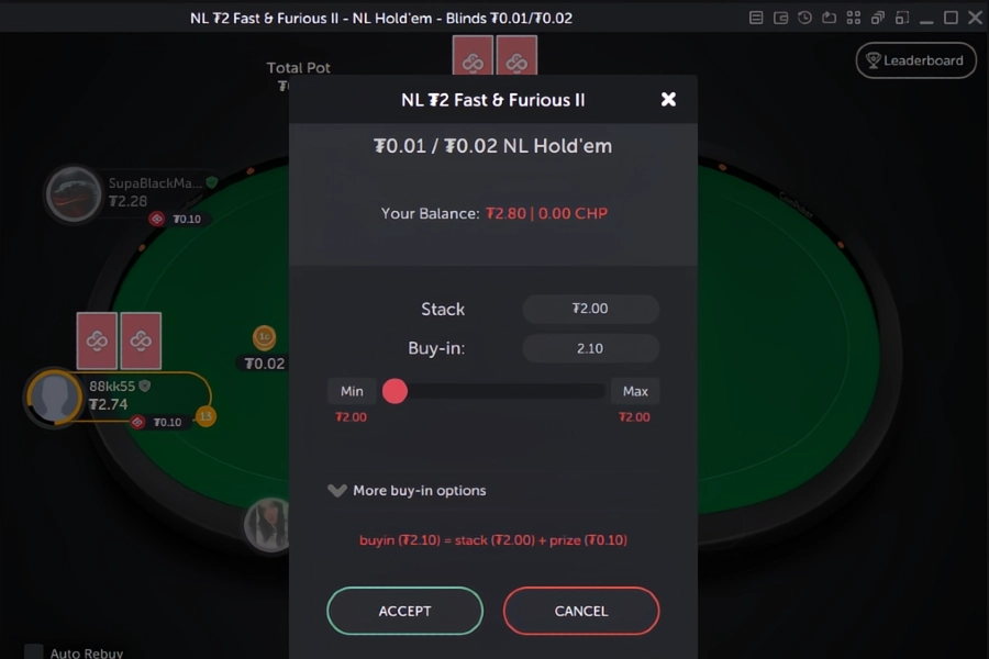 • Buying In: Every player contributes five big blinds (5BB) to the bounty as soon as they join a Seven Deuce table.