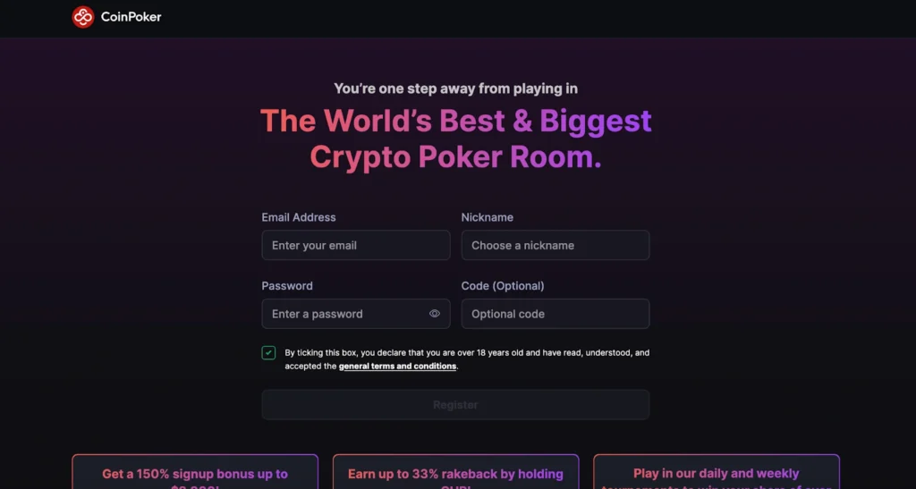 1. Open your web browser and navigate to the CoinPoker registration page.