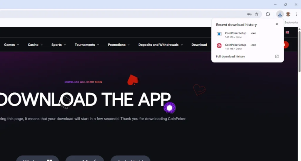 If you want to know how to install CoinPoker on Windows, this is the right place to be. We’ll walk you through the full process, from the first steps all the way to gameplay.