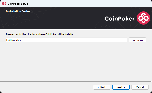 6. Specify where you wish to install CoinPoker. C:\CoinPoker is the default directory.