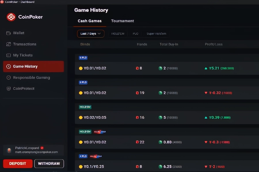 코인포커의 핸드 히스토리를 활용해 이전 핸드를 확인하고, 플레이를 분석해 실력을 향상시키세요. 이 포커 기능은 테이블에서 언제든지 사용할 수 있으며, 나중에 게임 히스토리에서 다시 확인할 수도 있습니다.