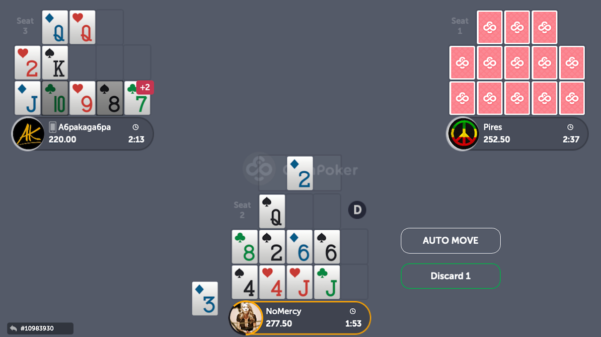 A special thanks to A6pakaga6pa and Pires for this great low stakes’ OFC cash games session in CoinPoker.