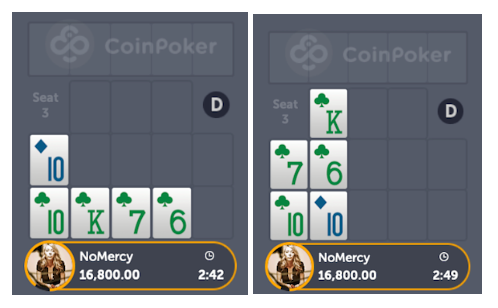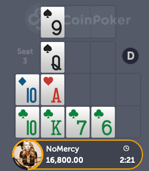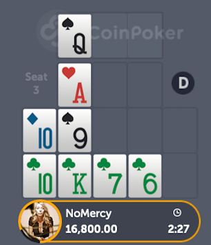 Let’s go over an analysis of a hand that presented itself to me recently while playing on CoinPoker. I received these five cards to start my board, and I was on the button, which means I got to see 10 cards before making my decision: