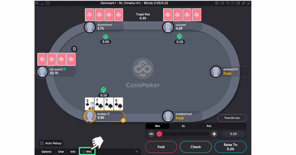 步驟1:在大廳中選擇任何現金桌或錦標賽,並查看左下角的RNG圖標。